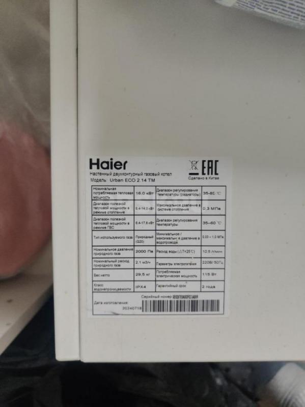 Продам газовый котел Haier, практически новый, проработал всего 3 месяца.