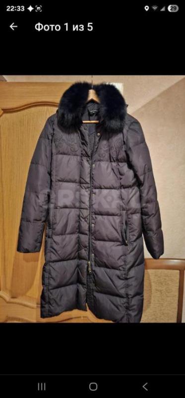 Пуховик теплый с капюшоном и воротником,44 размер,в хорошем состоянии,носили мало.