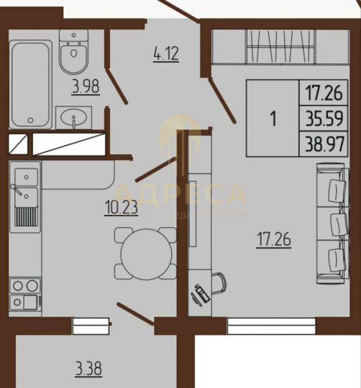 38.97 м2, 1-комн. квартира, 6 этаж из 11