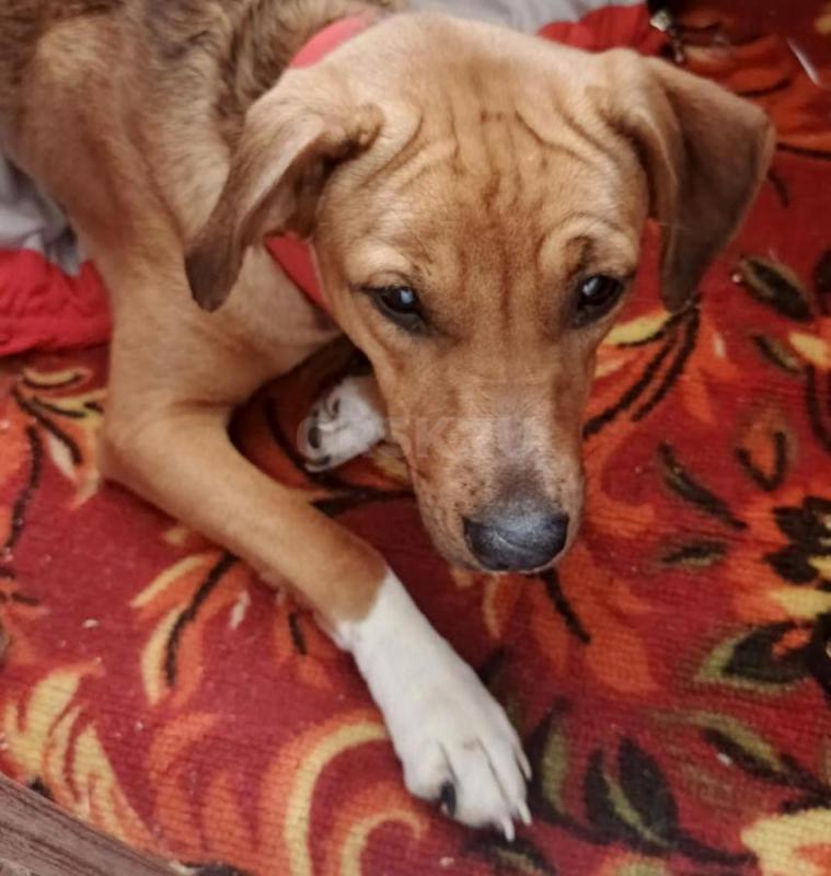 Хорошая, ласковая, добрая собачка, зовут Айри, по породе-Стаффорд, отдаём в добрые руки.