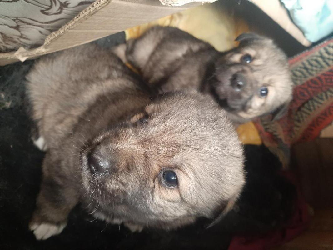 Два щенка 8 месяцев, кобелек довольно большой и стерилизованная девочка, ласковые, лохматые, заме